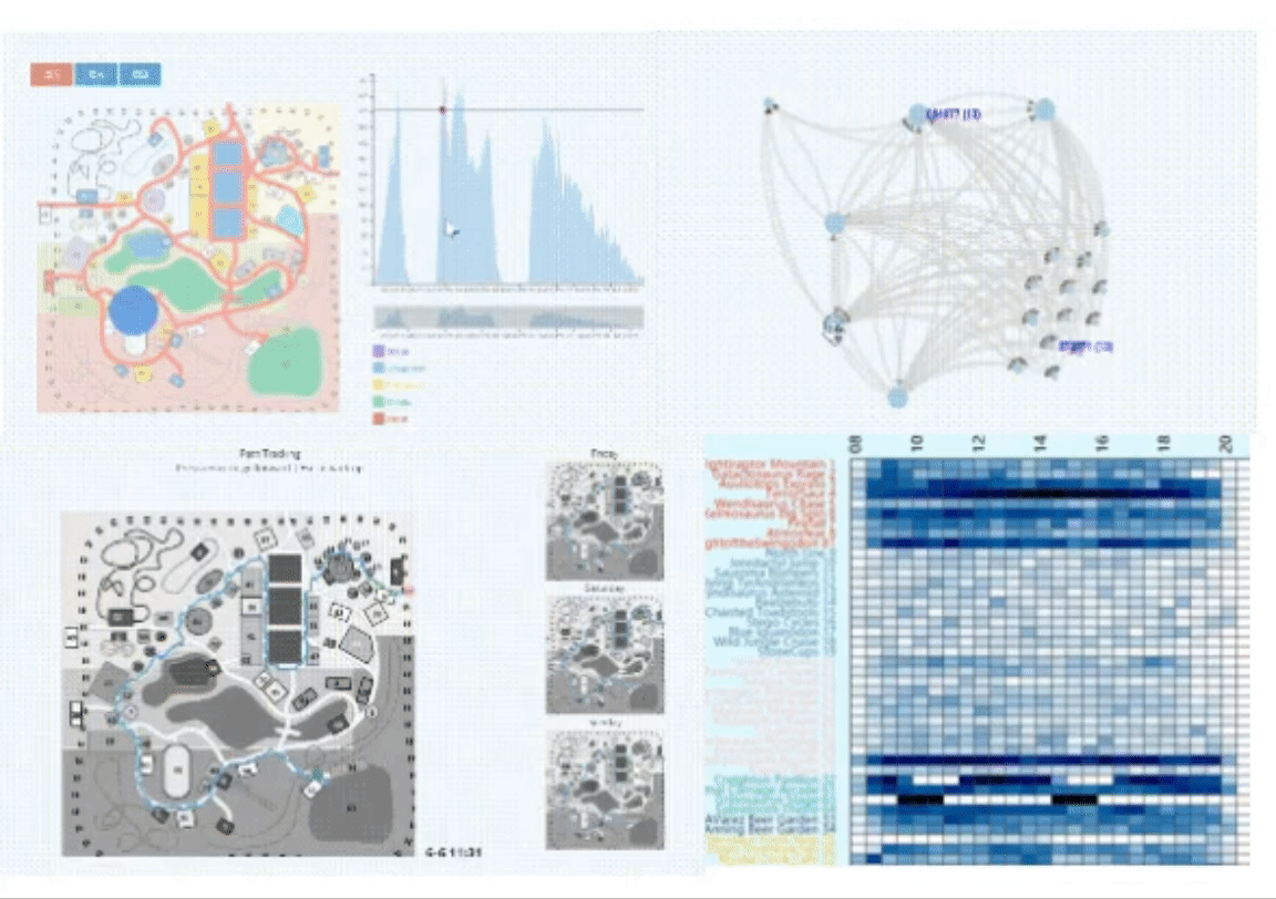 This project visualizes guest traffic changes, unique visitor trajectories, and communication logs to provide improvement suggestions for amusement park operations.